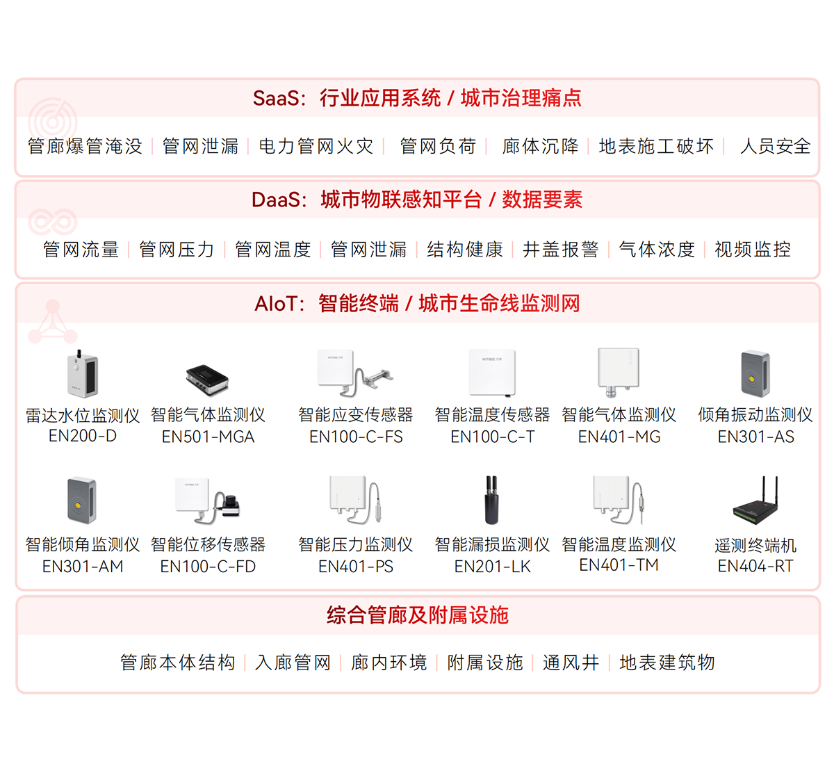 WITBEE?萬賓?是中國首批城市生命線智能監測儀器和大數據服務提供商,提供智能監測儀器、智能基站、云端平臺等智能物聯網技術與產品線,賦能城市排水、供水、燃氣、供熱、橋梁、建筑、隧道、綜合管廊、河湖等城市基礎設施生命線監測感知網絡化建設和智能化管理,對接城市運行管理服務平臺,支撐城市運行“一網統管”,提升城市生命線運行效率和安全,提高城市精細化治理能力。